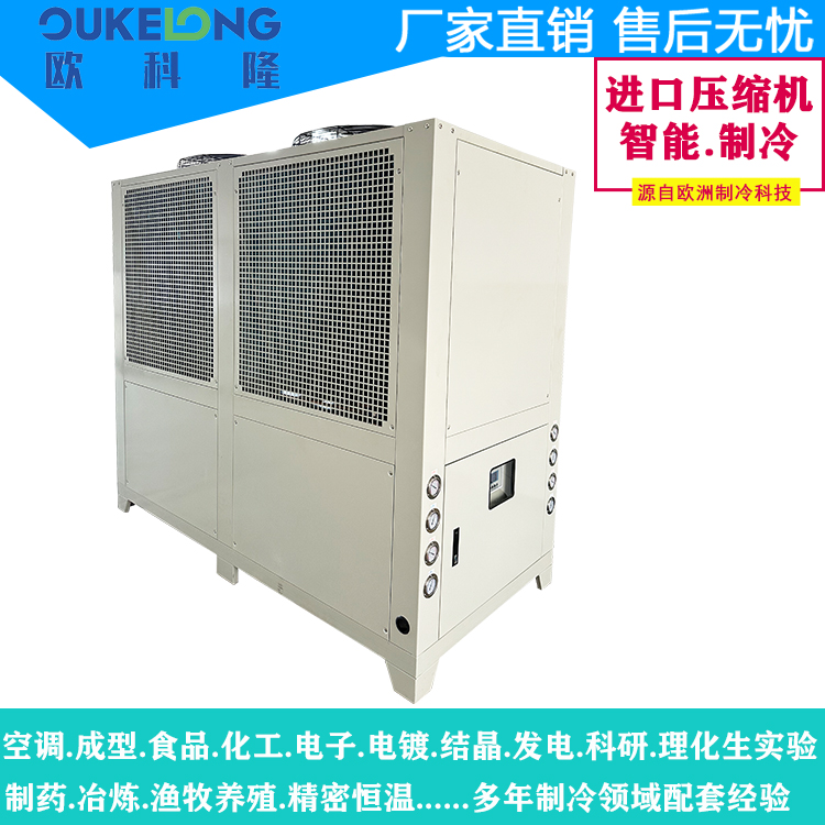 歐科隆制冷科技40HP風(fēng)冷式冷水機(jī)型號:OKL-40AF,是一款大功率工業(yè)制冷設(shè)備,專為重型制造和連續(xù)生產(chǎn)需求設(shè)計(jì)。該機(jī)型采用創(chuàng)新風(fēng)冷技術(shù),實(shí)現(xiàn)40匹(約120kW)強(qiáng)勁制冷量,突破傳統(tǒng)水冷系統(tǒng)限制,顯著降低安裝維護(hù)成本。